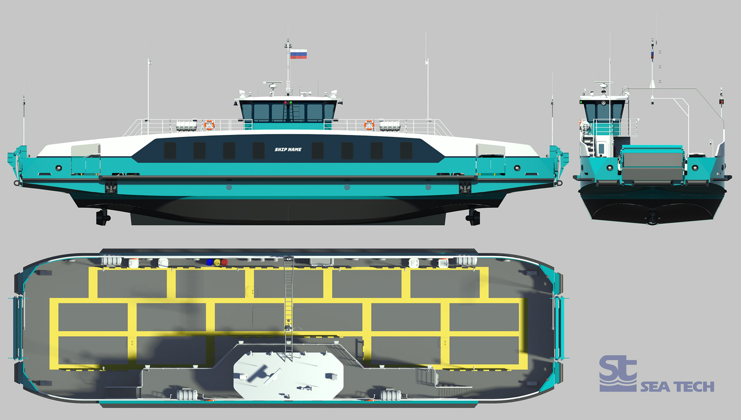 ferries (built in the 1960s). Unlike the older ferries, this design complies with all modern standards and regulations,