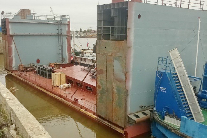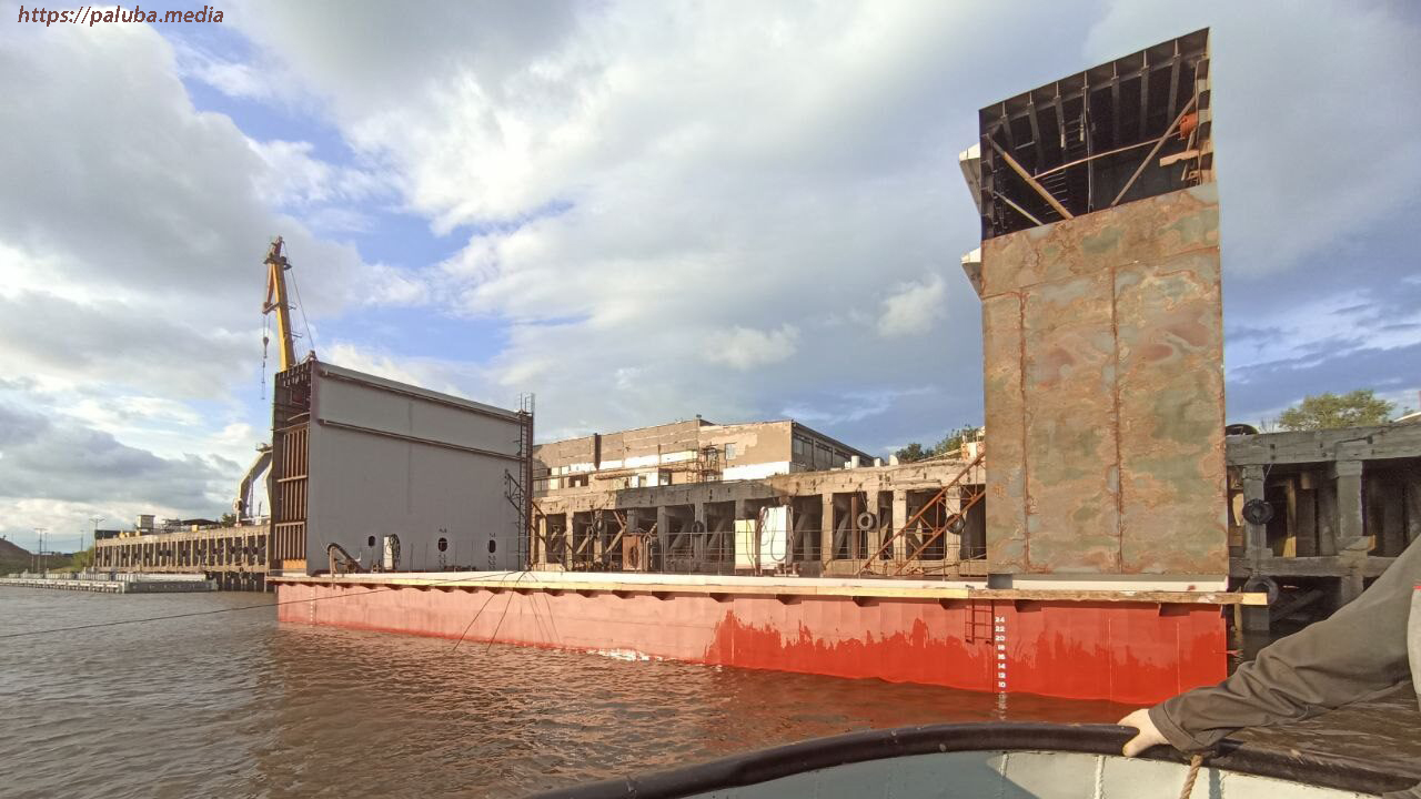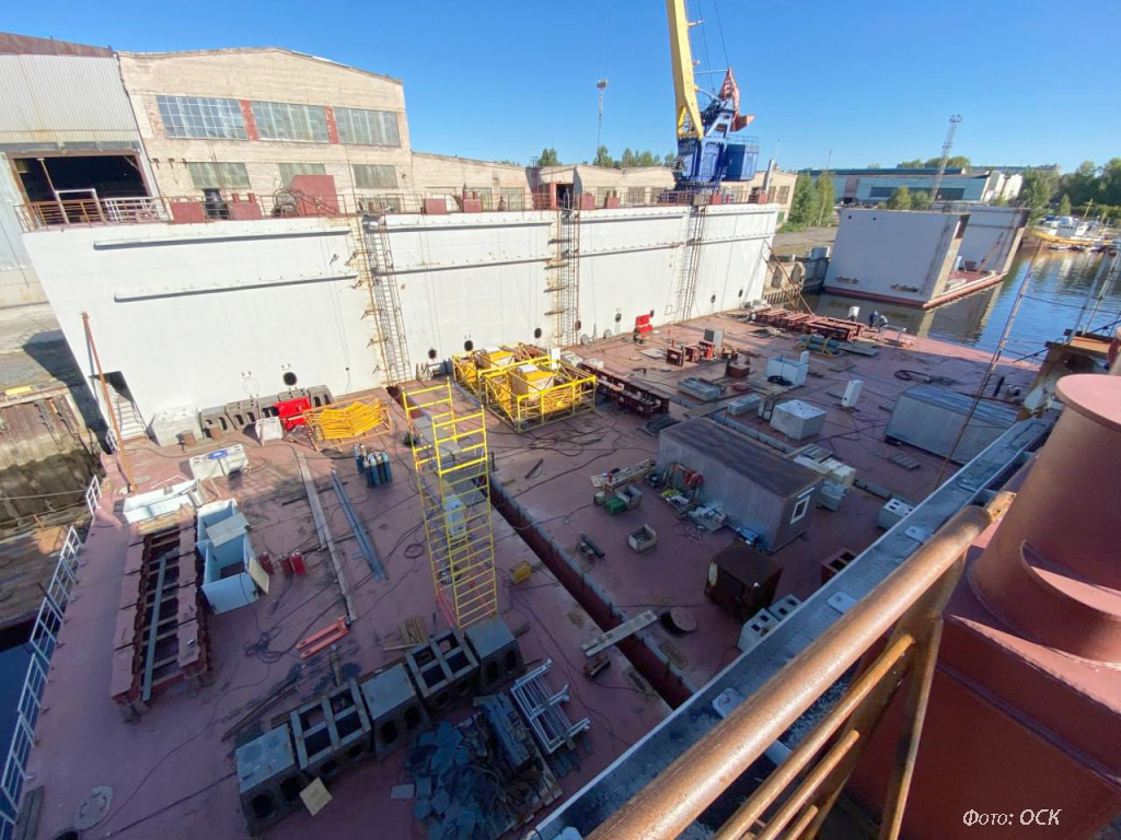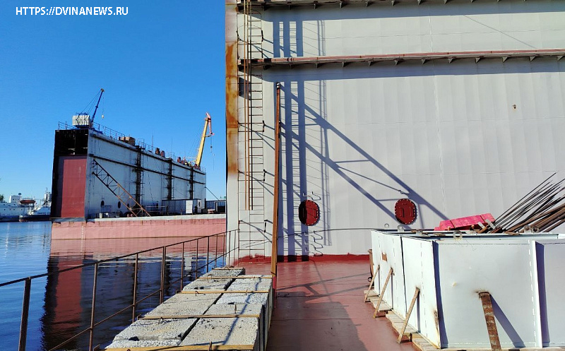 dvinanews.ru: 4 sections of the dock out of 10 have already been docked together, the 5th block, delivered to the harbor of the Krasnaya Kuznitsa plant, is being prepared for docking.