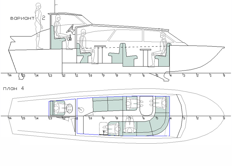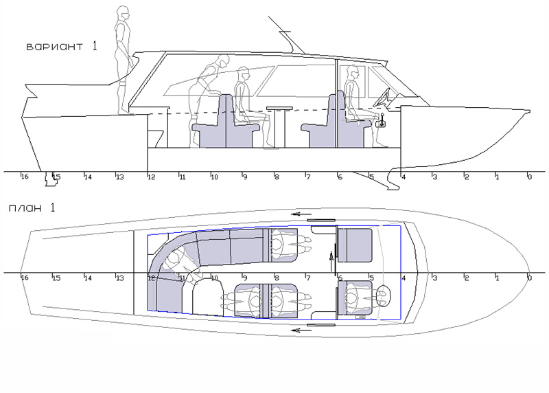 Вариант 1 (планы 1-3) - расположение водителя в носу, у