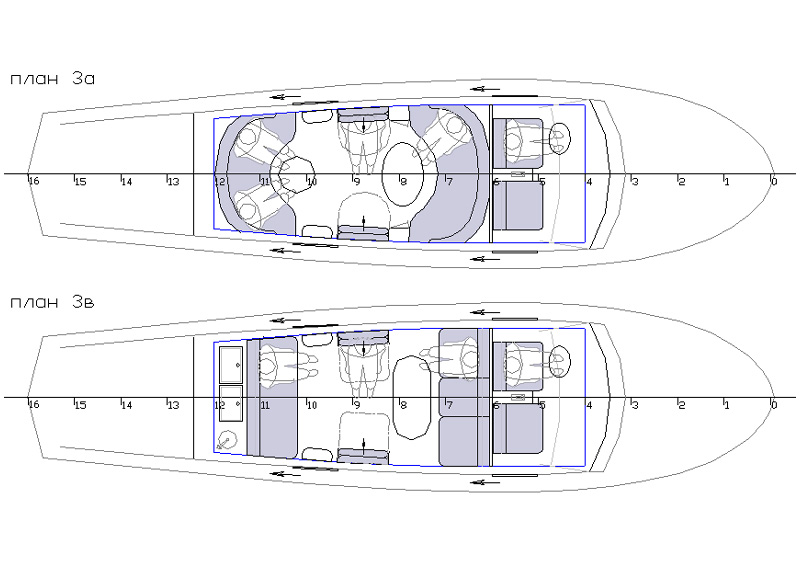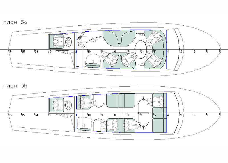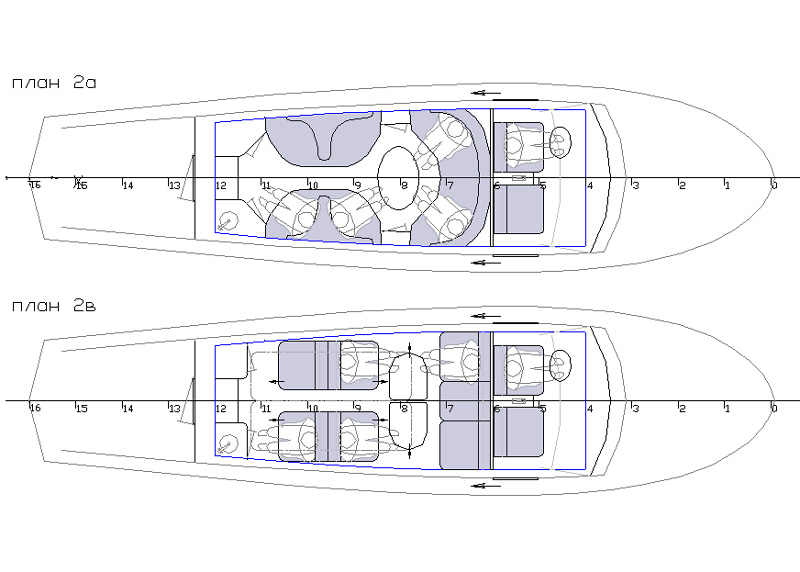 1,3), или на корму (план 2). При разложенных креслах можно получить