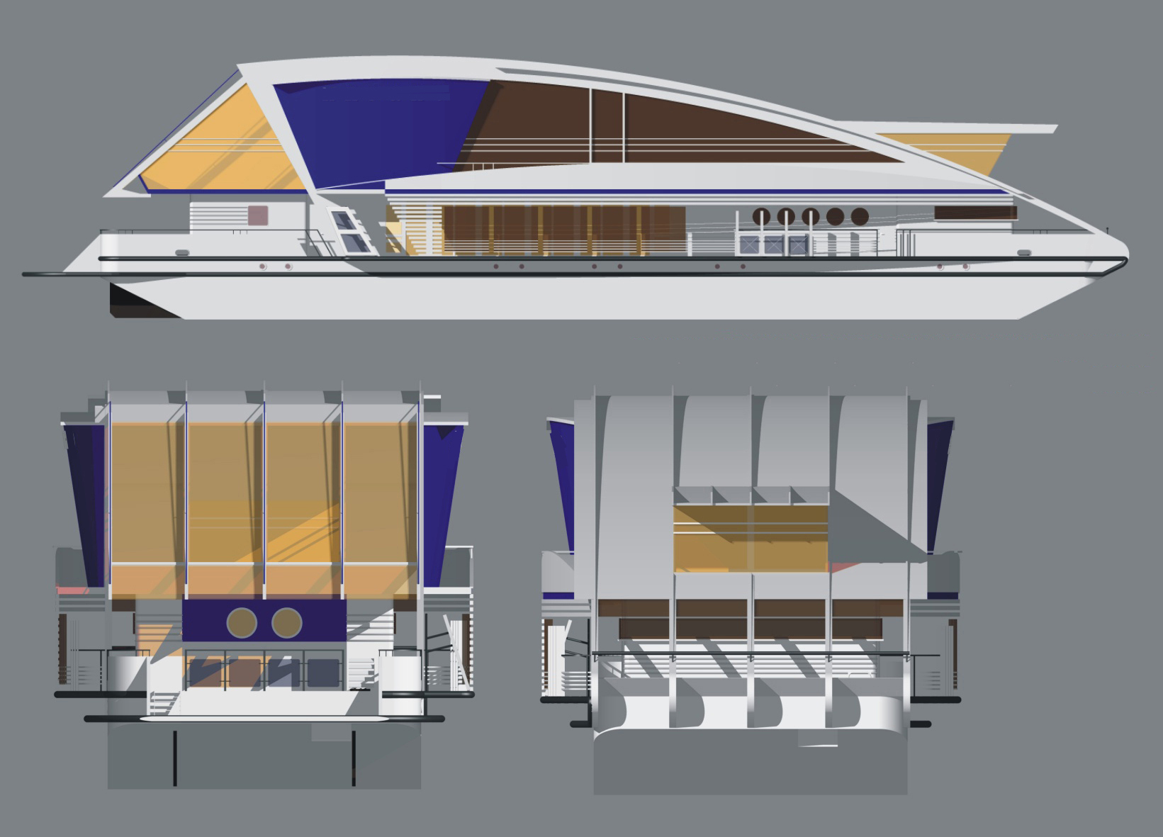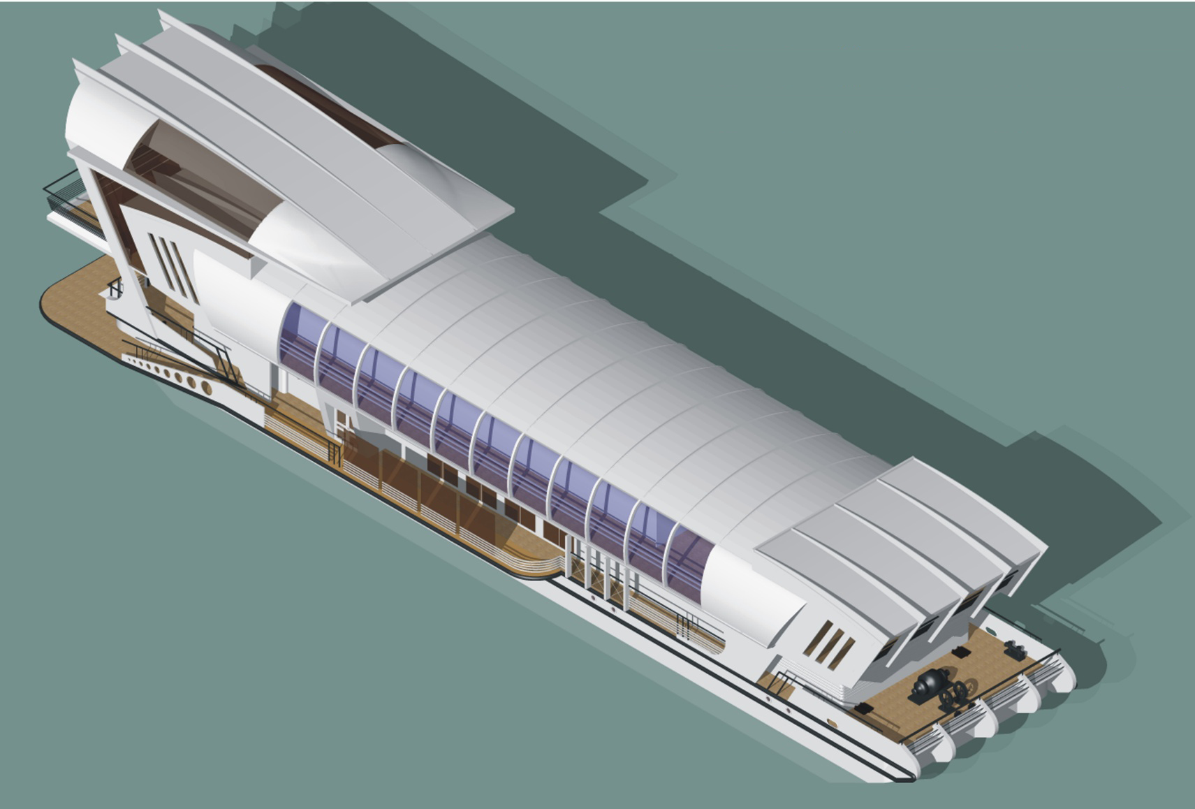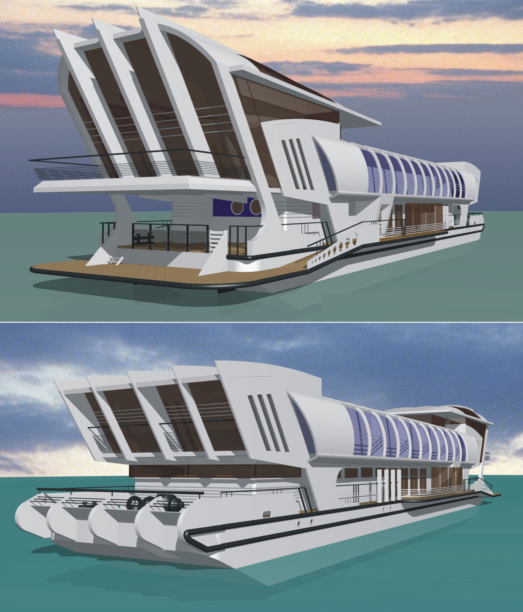 решений проекта автономного плавучего "Дома охотника и рыболова" (), предназначенного для работы в экологически чистых